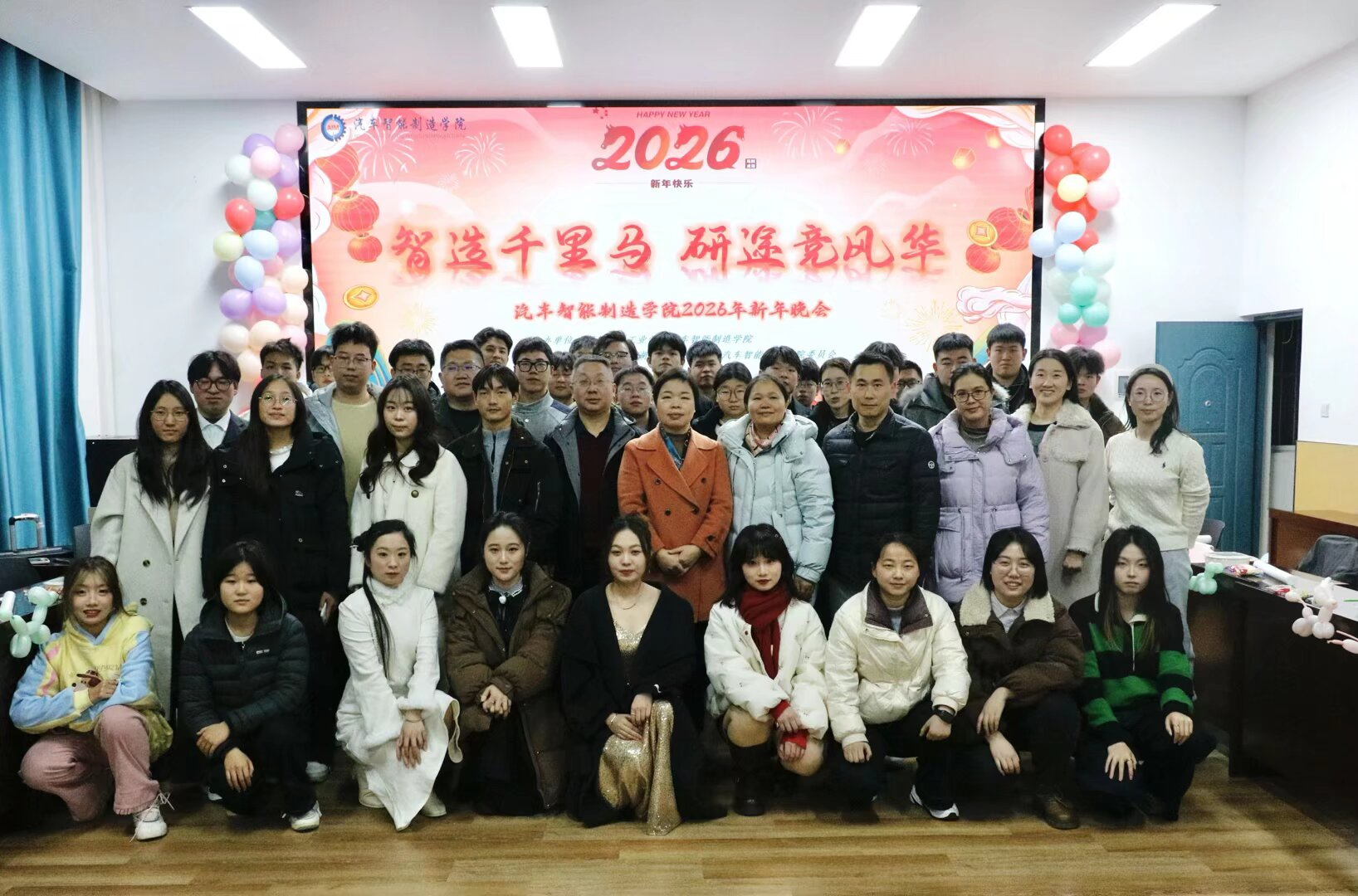 1月9日晚,365上市公司首届研究生新年晚会在学院J305会议室精彩上演。晚会以“智造梦想,逐梦新程”为主题,学院师生欢聚一堂,共迎新年。