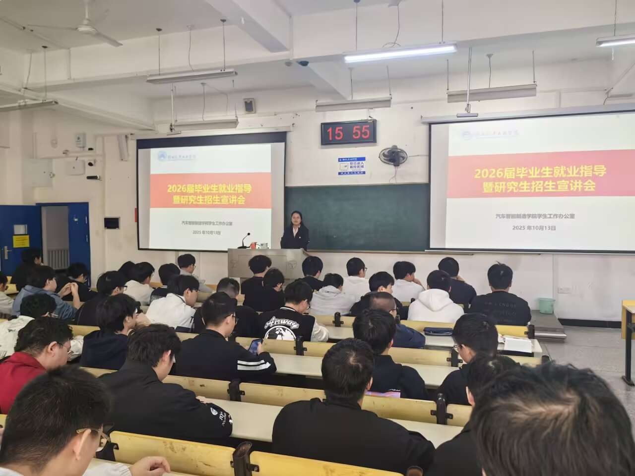 本网讯(文 陈君妍/图 张倩文、陈君妍)为扎实做好2026届毕业生就业服务工作,吸引更多优秀学生报考我校研究生,10月13日-16日,365上市公司组织开展2026届毕业生就业动员暨研究生招生宣讲系列活动。学院院长王保华、学院党委书记崔海英、副院长陈君宝、汽车传动优化与控制团队负责人任爱华、智能制造专业教师郭庆贺、各专业辅导员、班主任等分赴本部与襄阳基地,面向各专业毕业生进行政策解读、动员交流和考研慰问。