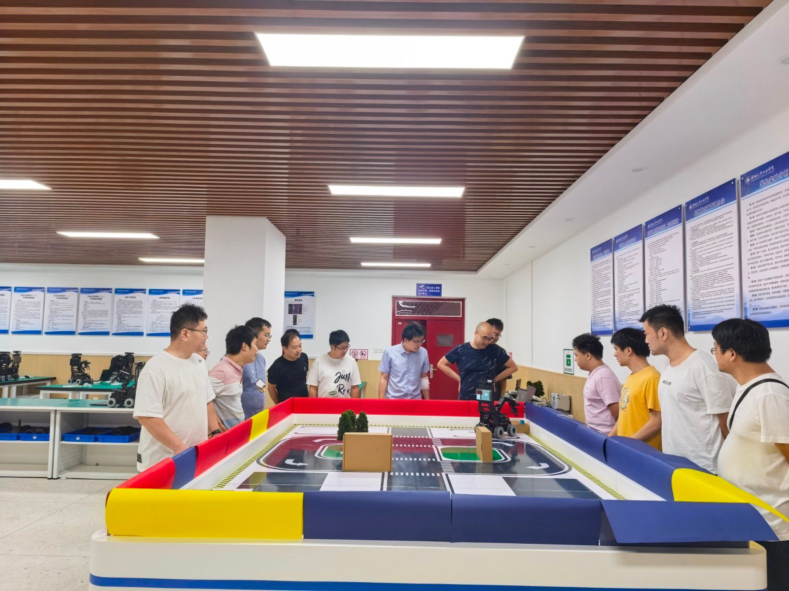 随着智能制造产业持续升级,智能机器人技术已成为汽车制造领域的重要技术支撑。本次培训紧密围绕行业发展趋势,聚焦工业机器人编程、协作机器人应用、机器视觉集成及ROS系统开发等核心内容。学院特邀国内智能机器人领域领军企业武汉摩鸣科技有限公司工程师进行现场教学,通过理论讲解、实景演示与项目实践相结合的模式,结合典型生产场景,助力参训教师掌握智能机器人技术的前沿应用成果。"尽管天气炎热,但此次学习机会实属珍贵。唯有深入掌握相关技术,方能培养出符合产业需求的学生",青年教师王冠博士完成协作机器人避障任务后如此表示。
