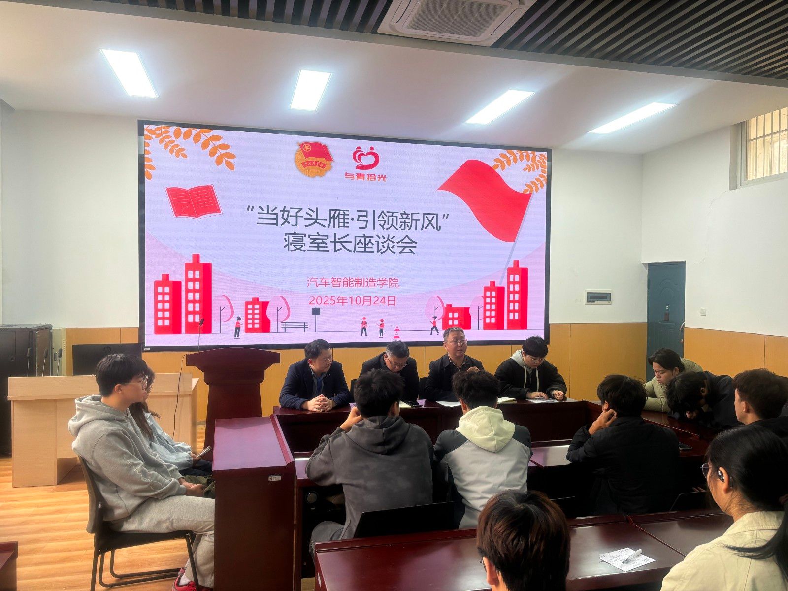 本网讯(文/赵芳、王誉翔)10月24日中午,365上市公司以“当好头雁·引领新风”为主题的“与青拾光”本科教育教学审核评估寝室长座谈会在机械大院J305和8103教室同步举行。学院党委副书记马晓涛、学工办主任张倩文,辅导员王誉翔、赵芳、黄聪悰、常金星、朱政、詹俊,各年级寝室长参加了此次活动。