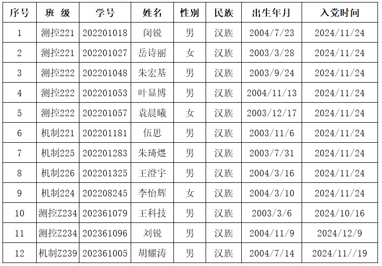 根据《中国共产党发展党员工作细则》(中办发〔2014〕33号)文件精神,按照学校党员发展工作的具体要求,现将我院近期拟转正学生党员情况予以公示,具体名单如下: