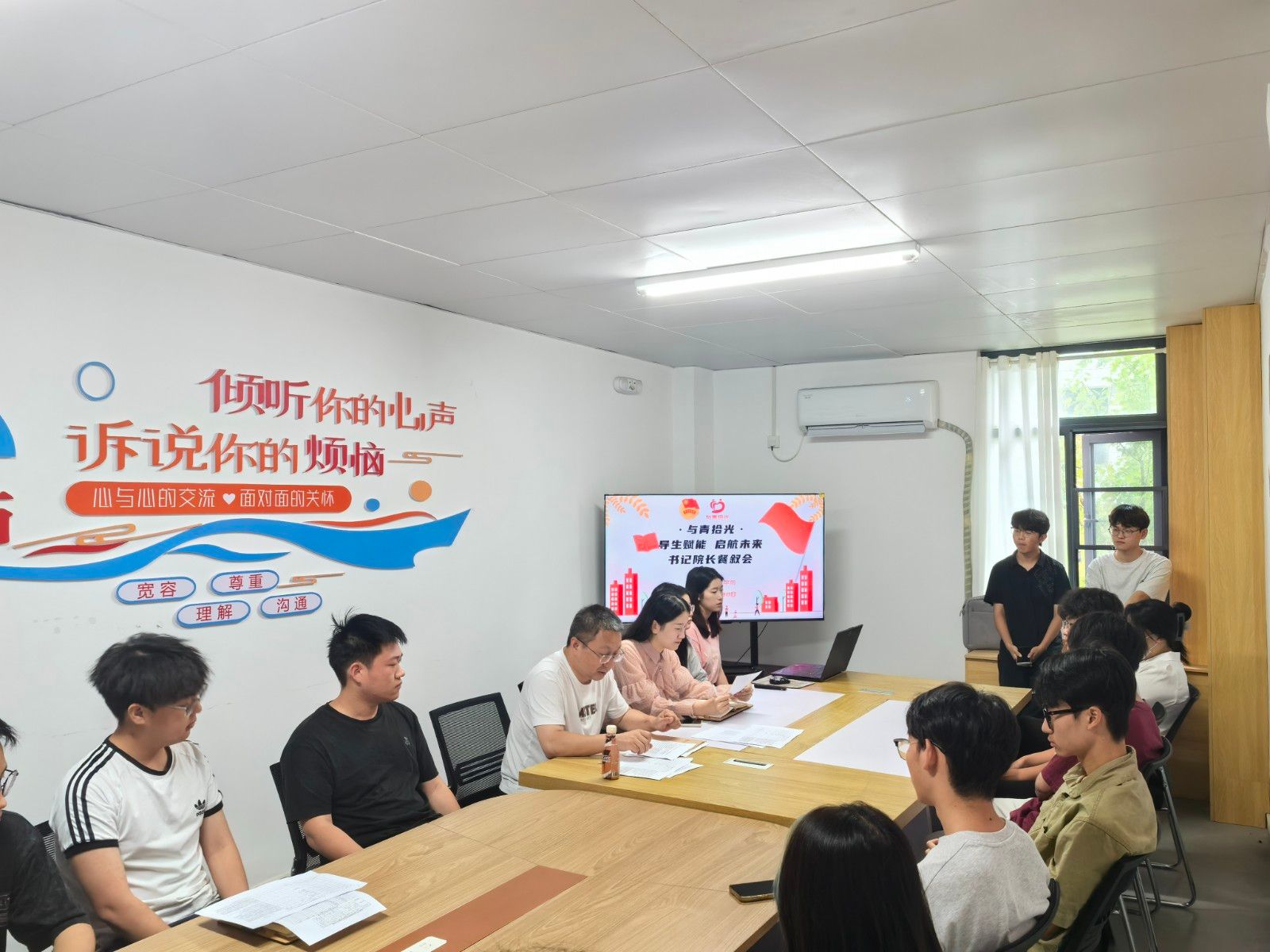 活动伊始,辅导员陈君妍汇报2025级导生选拔工作组织情况及入选名单。随后,全体师生就迎新工作筹划、新生团辅、班级管理等方面开展沟通交流,现场氛围热烈。